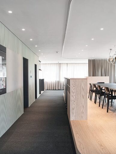 Das Ostschweizer Unternehmen Bruderer AG produziert Hochleistungs-Stanzautomaten, die sich durch aussergewöhnliche Präzision auszeichnen. Präzision war auch bei der Ausführung der Empfangstheke gefragt, die Wettstein gemeinsam mit Lista Office Ostschweiz umsetzen durfte.