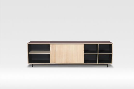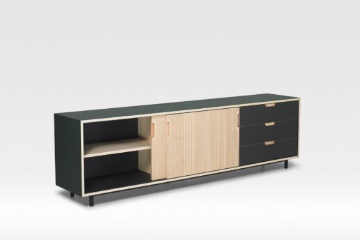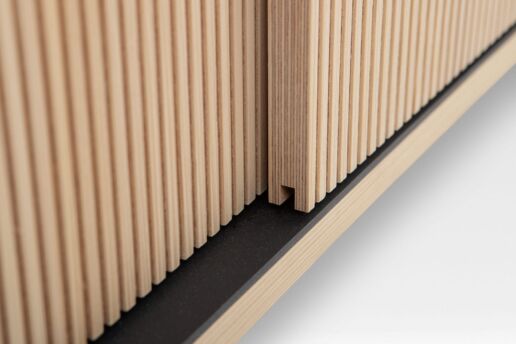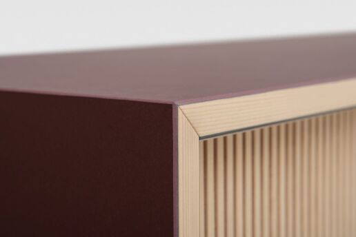 Individualität ist bei diesem Sideboard nach einem Entwurf des St.Galler Architekturbüros Tom Munz Architekt*innen Programm. Die Hülle besteht aus Möbellinoleum in unterschiedlichen Farbkombinationen. Bei den Schiebetüren aus Weisstanne sorgen vertikale Schlitzungen und Grifffräsungen in die Sperrholz-Trägerplatte für dezente Highlights, die auch dank ihrer hohen Präzision Eindruck machen.
