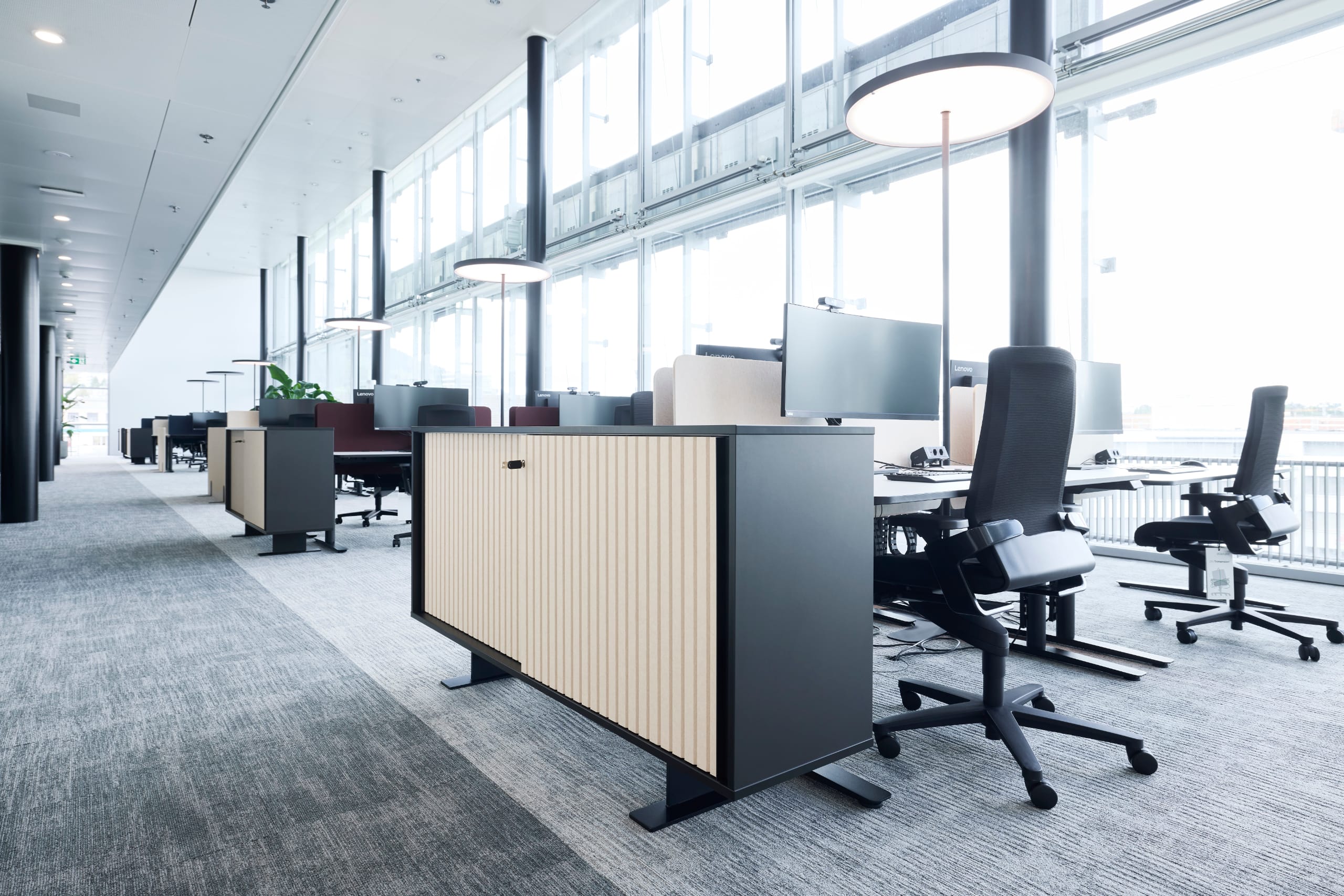 Die neuen Büroräumlichkeiten des Finanzdiensleiters Forvis Mazars in der Sihlcity in Zürich stellen eine ideale Bühne für die Tische und Sideboards von Wettstein dar. Gemeinsam mit den Planungspezialisten Malzacher.Consulting sowie Gräub Office realisierten wir attraktive Lösungen, die zum angenehmen Raumgefühl beitragen. Die individuellen Sideboards nach einem Design von Malzacher.Consulting verfügen über Schiebetüren, die mit PET-Akustikmaterial belegt sind und dadurch nicht nur optisch, sondern auch akustisch die gewünschte Wirkung erzielen. Das neue Stehtisch-Modell Spine, basierend auf einem Entwurf von Designer This Weber, verbindet ein elegantes Untergestell in Y-Form mit einer ovalen Tischplatte aus massivem, schwarz gebeizten Eichenholz. In den hellen Besprechungsräumen bietet der Konferenztisch 4 in den Ausführungen Linoleum mit Eichekanten und komplett in Eiche Furnier die ideale Grundlage für konstruktive Diskussionen und gelebtes Teamwork.